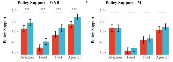 EXPOSURE TO THE INTERGENERATIONAL DILEMMA IMPACTS CLIMATE POLICY SUPPORT AMONG WOMEN AND NON-BINARY PEOPLE BUT NOT AMONG MEN.