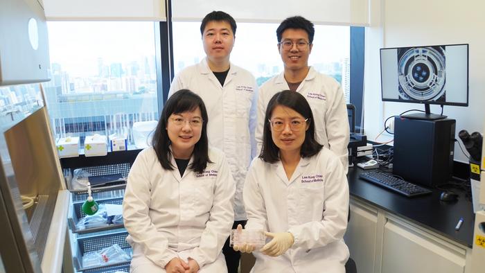 MEMBERS OF THE LKCMEDICINE RESEARCH TEAM INCLUDE (STANDING, L-R): RESEARCH ASSOCIATE LIU MENG, RESEARCH FELLOW DR ZHANG CHAO, (SEATED, L-R) ASSISTANT PROFESSOR FOO JIA NEE AND ASSISTANT PROFESSOR XIA YUN.