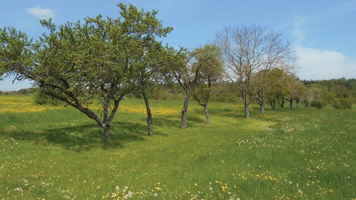 Orchard meadows, characterised by the combination of cultivated grasslands and scattered fruit trees, exhibit high flora and fauna biodiversity. Despite their ecological value, these habitats have been in decline since the mid-19th century due their decreasing economic worth. They now face threats from land abandonment and intensification of agriculture.