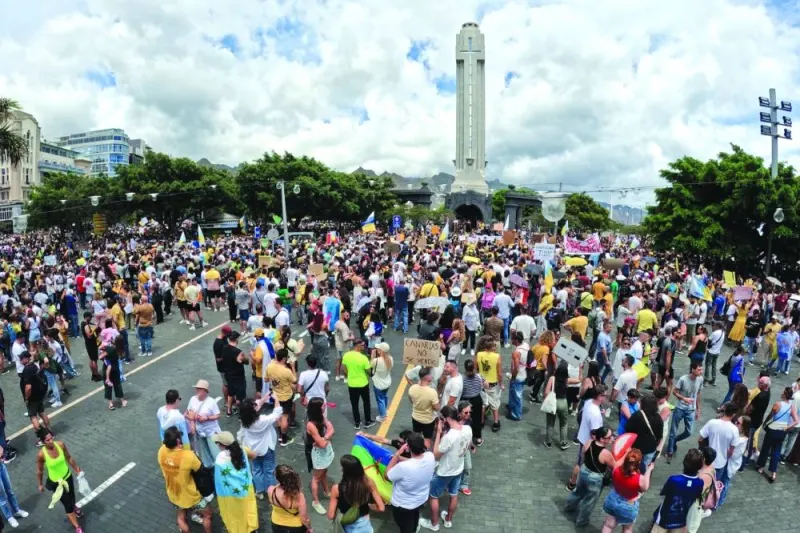 Tens of thousands of demonstrators hit the streets of Spain’s Canary Islands on Saturday to demand changes to the model of mass tourism they say is overwhelming the Atlantic archipelago.