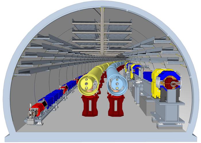A CUTAWAY SHOWING ACCELERATOR COMPONENTS INSIDE THE FUTURE ELECTRON-ION COLLIDER TUNNEL.