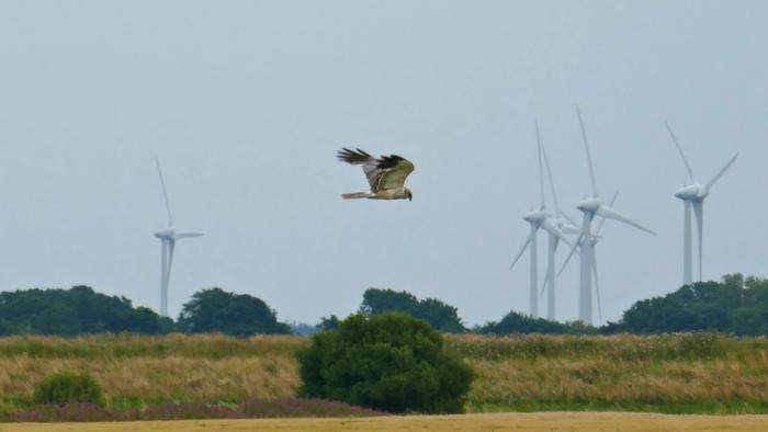 MONTAGU’S HARRIER, A RARE BIRD OF PREY, HUNTING IN AN AGRICULTURAL LANDSCAPE IN THE NORTH OF THE NETHERLANDS.
