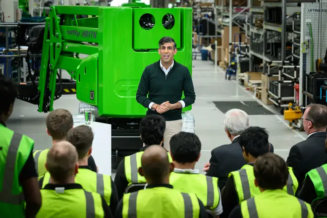 Rishi Sunak at a staff Q&A on the campaign trail at Nifty Lifts headquarters, Buckinghamshire. Picture: Getty