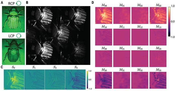 A UNIQUE SPECIES OF BEETLE, CHRYSINA GLORIOSA, HAS A DISTINCT RESPONSE FOR CIRCULARLY POLARIZED LIGHT REFLECTING OFF ITS SHELL. THIS CHIRAL RESPONSE IS CORRECTLY IMAGED BY THE NEW SYSTEM.