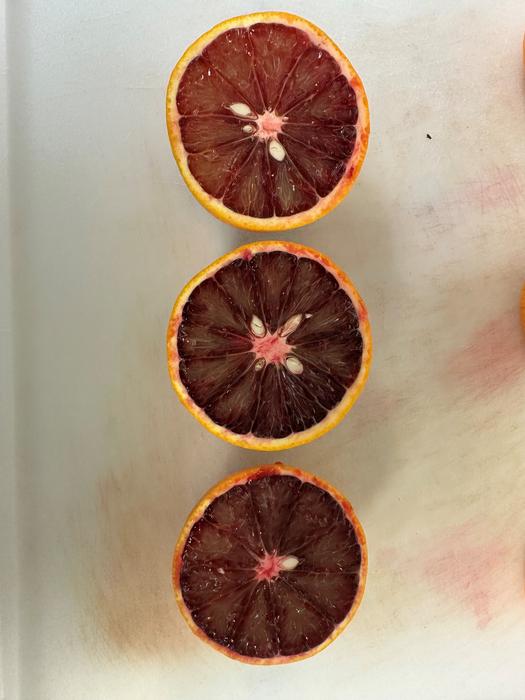Blood oranges get their name from their deep red flesh. Their skin contains a type of antioxidant pigment. The fruit is commonly grown in countries like Italy and Spain, which have the Mediterranean climate – cold, but above 32 degrees -- that helps them grow. In the United States, blood oranges grow primarily in California, but are not grown commercially yet in Florida.