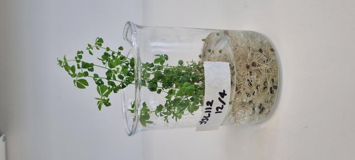 Jieshun Lin showing the root nodules on a Lotus japonicus.