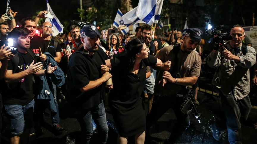 Demonstrators chanted slogans like “Bring down the deceptive government,” “Elections now,” “Traitors” and “Shame,” according to Anadolu’s monitoring of Israeli media outlets which live-streamed the protest.