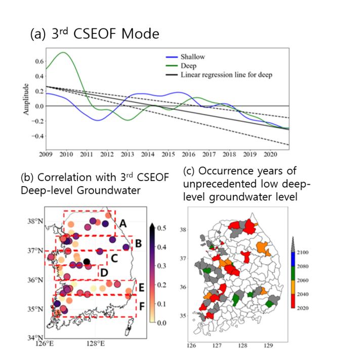 The third principal component highlighted a decline in groundwater levels in the western Korean Peninsula since 2009. The researchers projected that if this decline in deep groundwater continues, at least three million people in untapped or newly developed areas, primarily in the southwestern part of the peninsula, could face unprecedented groundwater level as a new normal (defined as groundwater depletion) by 2080. If the research team's predictions are correct, the impact would be particularly severe in drought-prone, untapped areas where groundwater is heavily relied upon.
