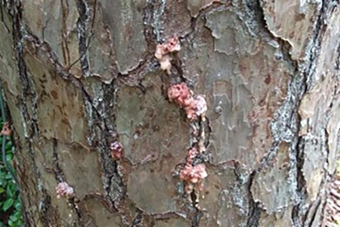 A RECENT ARTICLE IN ECOSPHERE TRACKS WATER USE IN BACKYARD TREES DURING AN ATTACK BY BARK BEETLES (WHICH CAUSED THE DISCHARGE SEEN HERE).