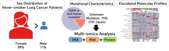 The primary cause of lung cancer is smoking. However, the incidence of lung cancer among never-smokers has been steadily increasing, especially among women. While approximately 80% of never-smoking lung cancer patients are prescribed targeted therapies that focus on mutations in proteins such as EGFR and ALK, the remaining patients often receive cytotoxic chemotherapy with high side effects and relatively low response rates, highlighting the urgent need for targeted therapies.