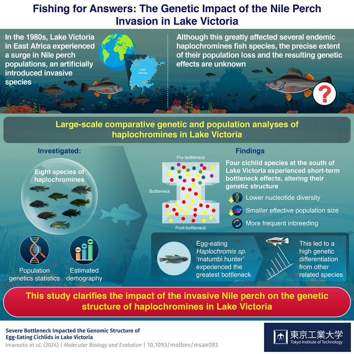 Against this backdrop, a research team from Tokyo Institute of Technology (Tokyo Tech), The Graduate University for Advanced Studies, SOKENDAI in Japan and Tanzania Fisheries Research Institute in Tanzania decided to shed some light on the issue. In their latest study, which was published in Molecular Biology and Evolution, the researchers conducted large-scale comparative genomics analyses on multiple species of cichlids endemic to Lake Victoria, which provided detailed insights into the effects of the invasive Nile perch since its introduction to this environment. The team included Associate Professor Masato Nikaido and doctoral student Minami Imamoto from Tokyo Tech.