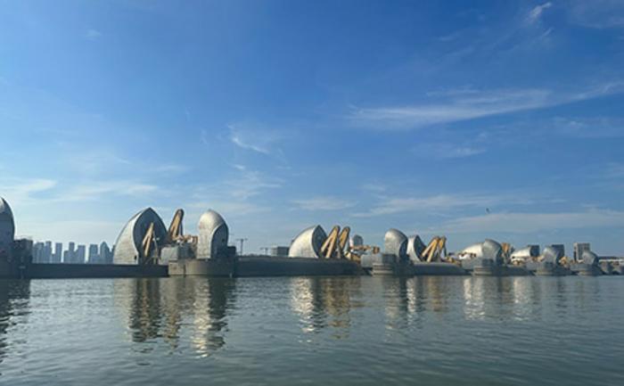 The Thames Barrier that protects London from flooding.
