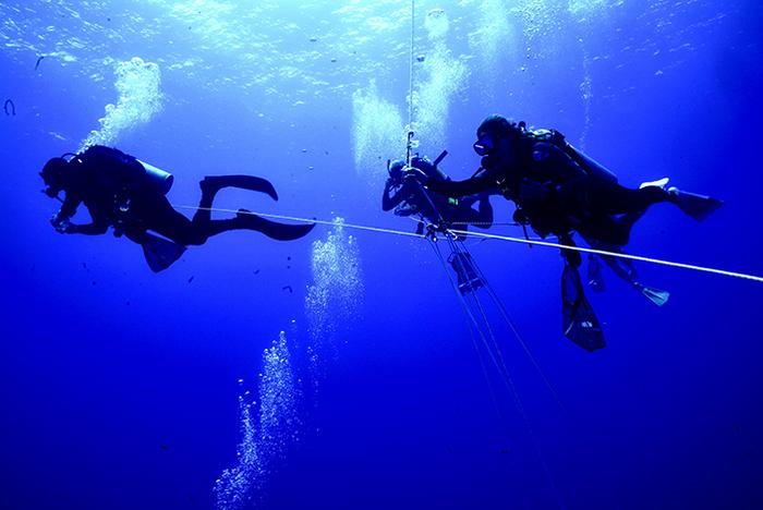 SCUBA diving for shallow-water comb jellies off the Big Island of Hawaii. Most comb jellies live in the open ocean, where divers have to use tethers to avoid drifting away.