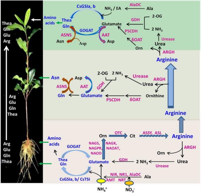 A WORKING MODEL FOR N ASSIMILATION, AA SYNTHESIS, TRANSPORT, AND DEGRADATION/RECYCLING IN TEA PLANTS.