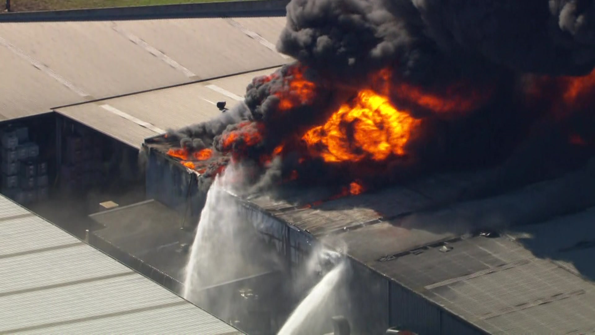 The factory in Derrimut where a major blaze broke out yesterday contained barrels of chemicals.(Supplied: EPA)