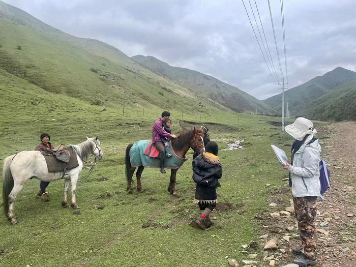PASTORALISTS ON HORSEBACK BEING INTERVIEWED BY RESEARCHERS ABOUT GRASSLAND RESTORATION ON THE QINGHAI-TIBETAN PLATEAU IN THE NORTHWEST OF CHINA