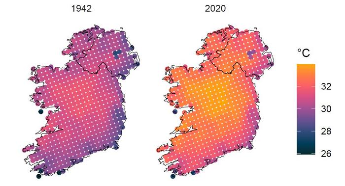 The study, which developed a new model to predict the frequency, magnitude and spatial extent of extreme summer temperature events in Ireland, also estimates that a temperature of more than 34 degrees Celsius -- a value not yet recorded in Ireland – changed from a 1 in 1,600-year event to a 1 in 28-year event between 1942 and 2020.