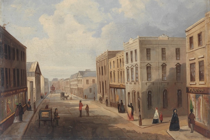Sydney's George Street in 1855, where the Empire newspaper was located.(Supplied: State Library of NSW)