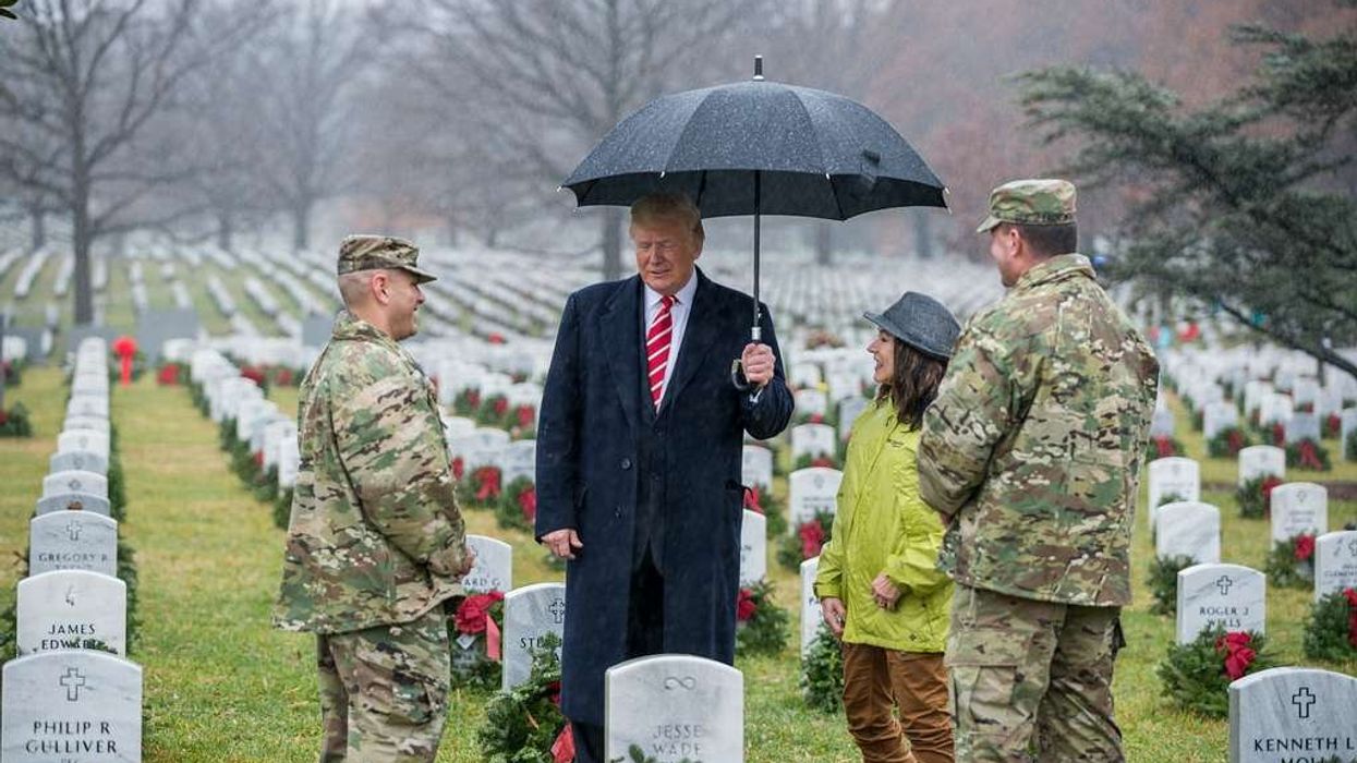 The Trump campaign has been heavily criticized for using the cemetery for political purposes. The campaign distributed a photo and video of Trump next to the grave of a Green Beret, Master Sgt. Andrew Marckesano, who died by suicide and whose family denied the campaign permission to film.
