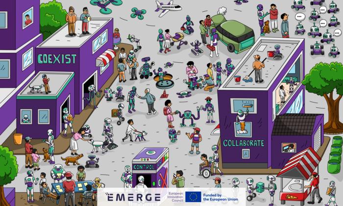 The EMERGE project will deliver a new philosophical, mathematical, and technological framework to demonstrate, both theoretically and experimentally, how a collaborative awareness – a representation of shared existence, environment and goals – can arise from the interactions of elemental artificial entities. Learn more: https://eic-emerge.eu/