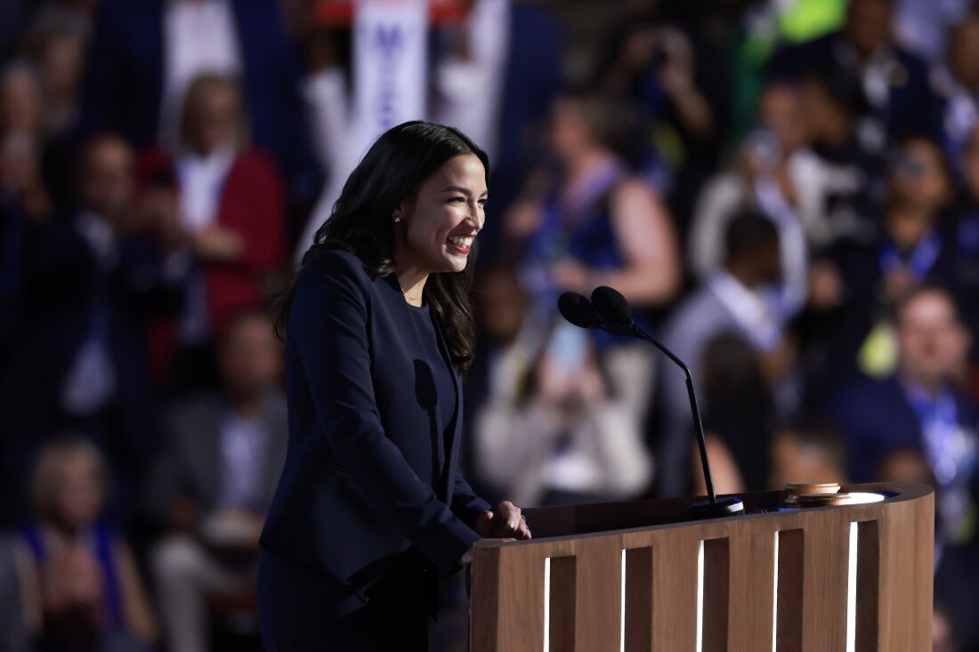 Rep. Alexandria Ocasio-Cortez (D-NY) speaks onstage during the first day of the Democratic National Convention at the United Center on August 19, 2024 in Chicago, Illinois.Joe Raedle/Getty Images