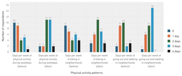 Number of days participated in physical activities before and after park construction.
