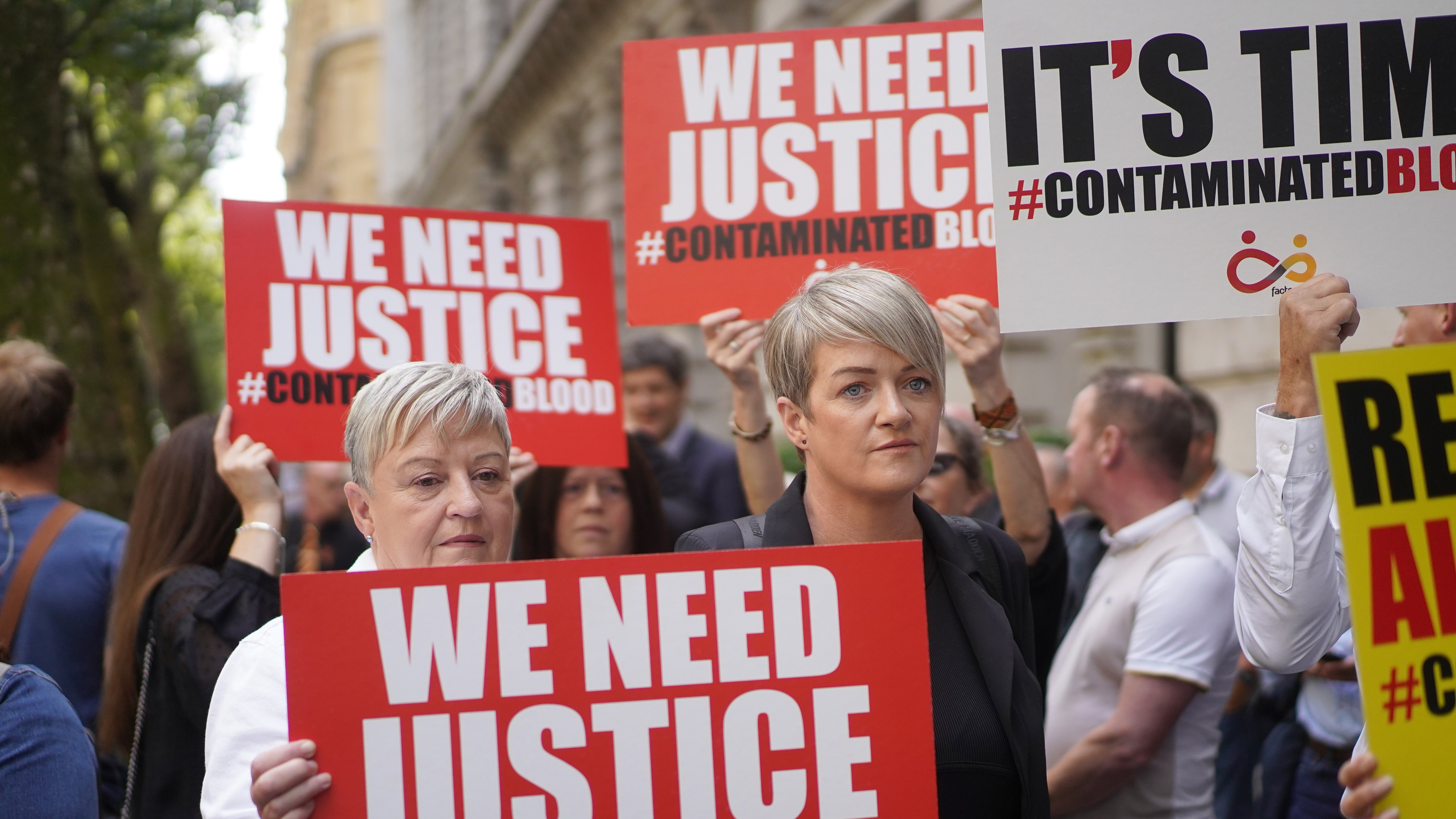 Protesters demanding justice over one of the biggest scandals in NHS history. / PA