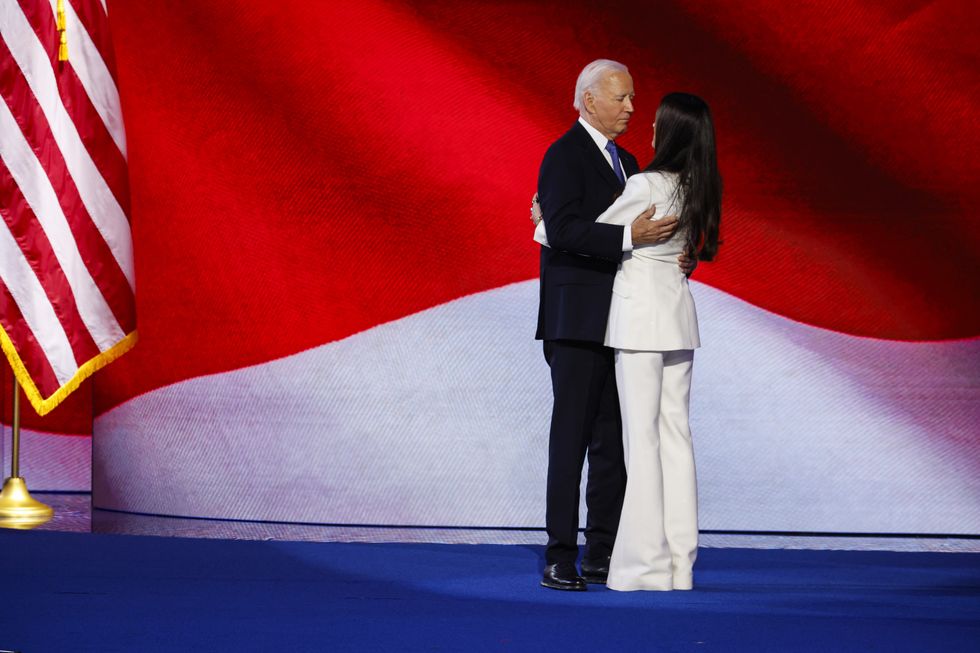 U.S. President Joe Biden greets first daughter Ashley Biden during the first day of the Democratic National Convention at the United Center on Aug. 19, 2024, in Chicago. (Photo by Chip Somodevilla/Getty Images)
