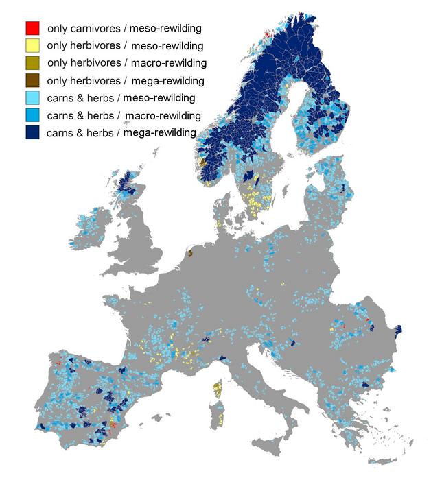 "There are many areas in Europe that have a low enough human footprint, as well as the presence of key animal species, to potentially be rewilded," says first author and biogeographer Miguel B. Araújo (@Araujo_lab) of the National Museum of Natural Sciences, CSIC, Spain, and the University of Évora, Portugal. "We also highlight the need for different strategies depending on the conditions of each region."