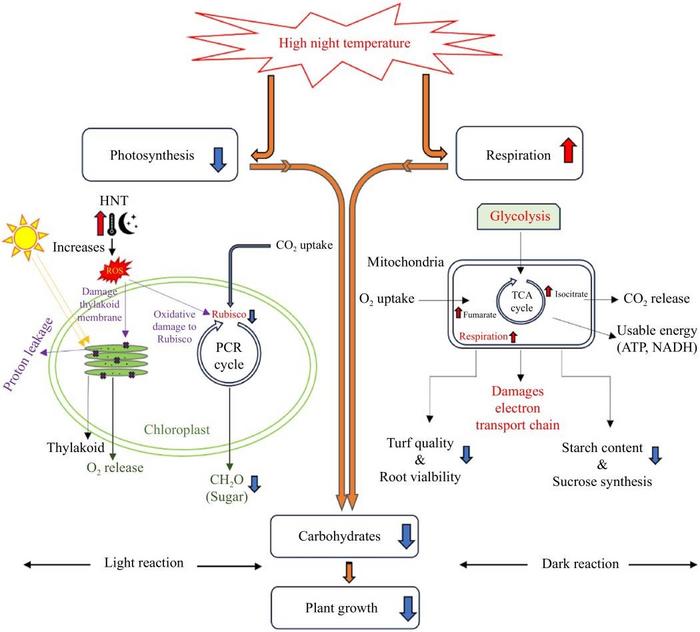 Global warming, particularly the faster rise in nighttime temperatures compared to daytime temperatures, adversely affects plant growth and development. Current research shows that elevated HNT hinder plant productivity, with significant yield losses observed in crops like rice and wheat. However, the mechanisms behind these inhibitory effects, particularly regarding physiological and metabolic processes, are not well understood.