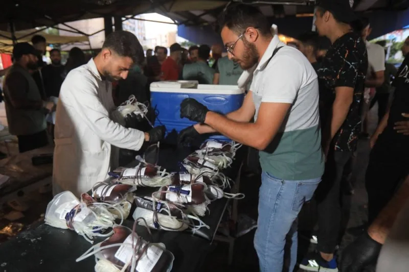 Medics collect blood donations in Beirut's southern suburb on Tuesday, after explosions hit locations in several Hezbollah strongholds around Lebanon. AFP