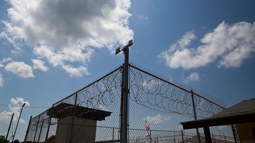 Photo shows A low angle view of the outside fence of Elmore Correctional Facility at daytime