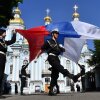Military musicians perform in Moscow's Red Square on Sept. 1, 2024. Researchers at Microsoft say Russia is pivoting its online influence operations to focus on Vice President Kamala Harris and her running mate, Gov. Tim Walz of Minnesota, in the final stretch of the election.Stringer/AFP via Getty Images/AFP