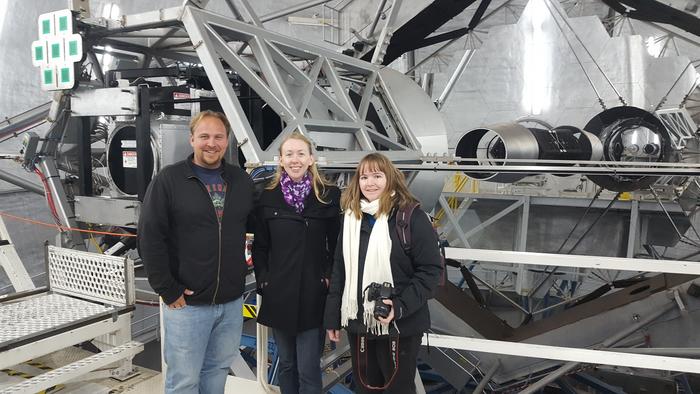 Lead author, Nikki Nielsen with colleagues Glenn Kacprzak and Stephanie Pointon in front of the Keck mirror