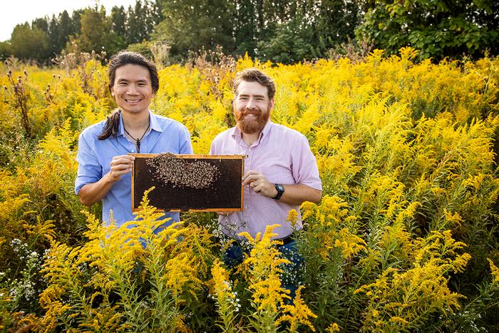llinois entomology professor Adam Dolezal, right, and graduate student Edward Hsieh found that pollen from natural sources enhances honey bee resilience when the bees are exposed to agricultural chemicals and infected with Israeli Acute Paralysis Virus.