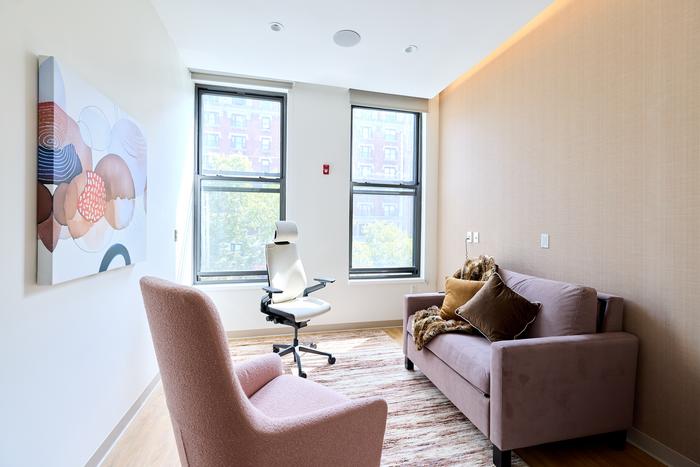 Located at 600 West 112th Street, on the southwest corner of Broadway, the new space will house six treatment rooms and a group therapy room, with features to enable therapy supervision, teaching, and research. Large floor-to-ceiling windows provide natural light and a view of the surrounding tree-lined streets.