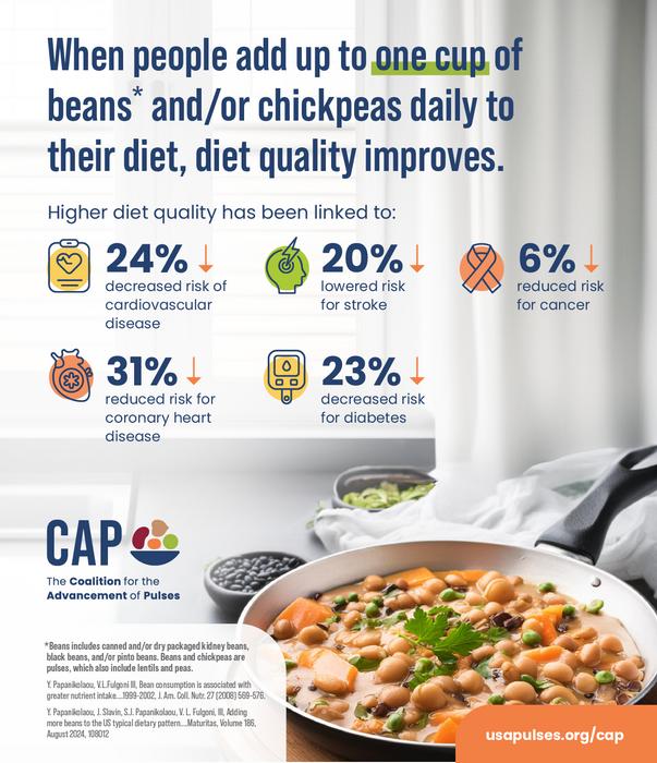 When people add one cup of Beans and/or Chickpeas daily to their diet, diet quality improves.