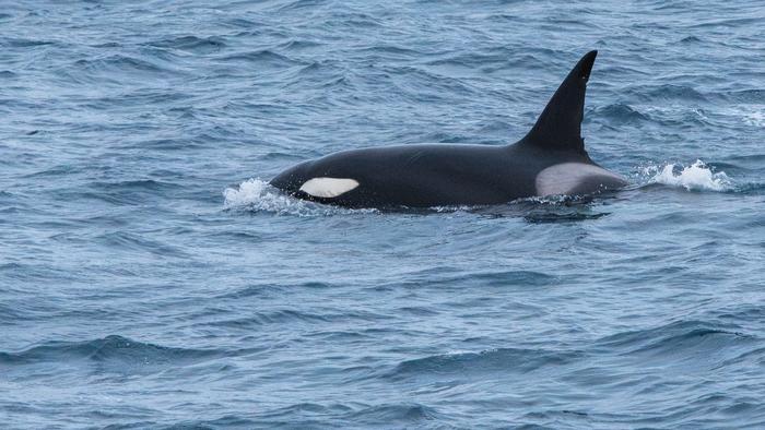 An orca whale in the Denmark Strait, between Greenland and Iceland in the Arctic Ocean.