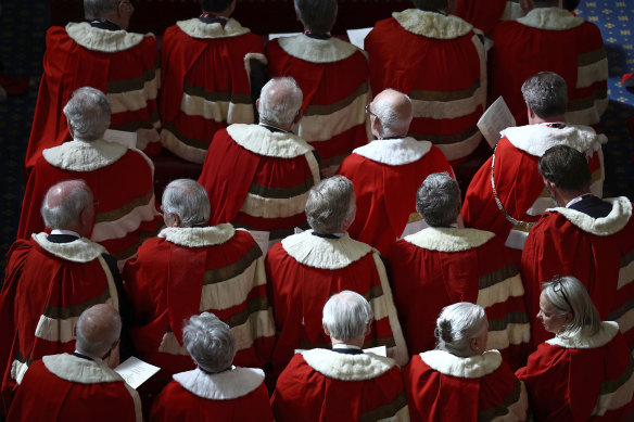 Members of the House of Lords take their seats in the Lords Chamber, ahead of the State Opening of Parliament in July.CREDIT:AP