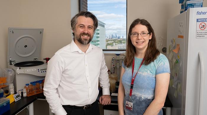 Researchers at the University of Chicago Pritzker School of Molecular Engineering (PME) and UChicago Medicine, including Asst. Prof. Mark Mimee (left) and research specialist Ella Rotman, have shown that a mixture of collections of bacteriophages can successfully treat antibiotic-resistant infections in mice.
