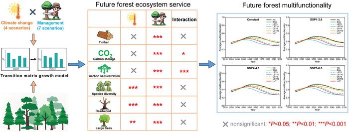 In a recent study published in the KeAi journal Forest Ecosystems, researchers in China applied a transition matrix growth model to simulate the effects of various management strategies on forest ecosystem services and multifunctionality in the context of climate change. Conducted in Jilin Province, northeastern China, the study incorporated climate change factors to reveal how appropriate management can enhance forest multifunctionality across all climate scenarios.