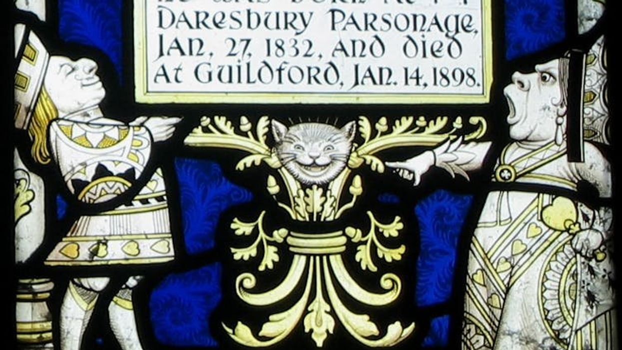 Stained glass designed by Geoffrey Webb depicts Lewis Carroll’s characters in All Saints Church in Daresbury, Cheshire, England. Peter I. Vardy/Wikimedia Commons