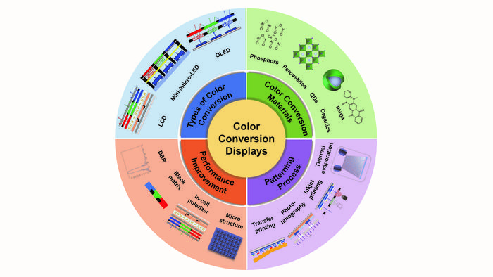 In a review paper published in Light: Science & Applications, a team of scientists, led by Professor Hoi-sing Kwok from State Key Laboratory of Advanced Displays and Optoelectronics Technologies,the Hong Kong University of Science and Technology, Professor Enguo Chen from National and Local United Engineering Laboratory of Flat Panel Display Technology, Fuzhou University, and Professor Guijun LI from Key Laboratory of Optoelectronic Devices and Systems of Ministry of Education and Guangdong Province, Shenzhen University, and co-workers have provided a comprehensive review of color-conversion displays, covering types of color conversion in displays, color conversion materials (CCMs), patterning processes.