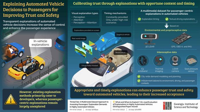 Addressing this gap, a research team, led by Professor SeungJun Kim from the Gwangju Institute of Science and Technology (GIST), South Korea, investigated the explanation demands of automated vehicle passengers in real-road conditions. They then introduced a multimodal dataset, called TimelyTale, which includes passenger-specific sensor data for timely and context-relevant explanations. “Our research shifts the focus of XAI in autonomous driving from developers to passengers. We have developed an approach for gathering passenger's actual demand for in-vehicle explanations and methods to generate timely, situation-relevant explanations for passengers,” explains Prof. Kim.