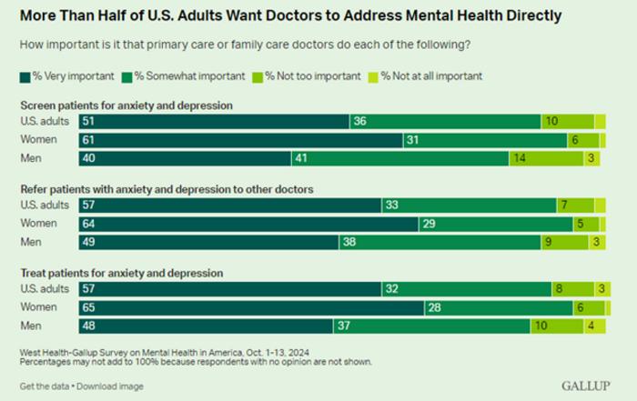 More than half of U.S. adults want doctors to address mental health directly. West Health-Gallup Survey on Mental Health in America, Oct. 1-13, 2024.