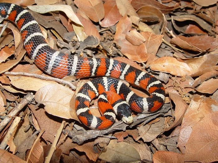 The nonvenomous Arizona mountain kingsnake, which resembles a venomous coral snake, has a survival advantage by warning off would-be predators that avoid colorful coral snakes.