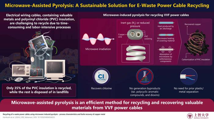 In a study published in the journal RSC Advances on 20 September 2024, researchers from Sophia University in Japan and Università di Pavia in Italy have developed a new microwave-induced pyrolysis method that provides an affordable and efficient way to recycle electrical wiring cables. The method carbonizes the PVC insulation and exposes the copper wire without damaging it, allowing for easy recovery without generating highly toxic byproducts.