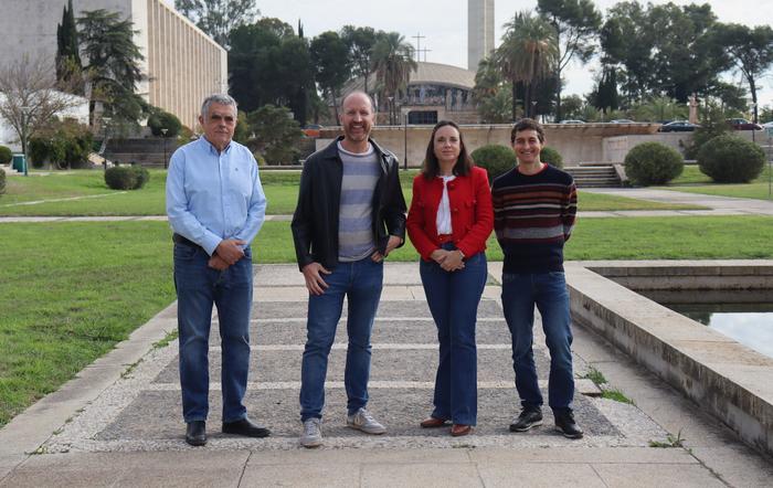 Researchers Rafael López Luque, Marta Varo Martínez, Luis Manuel Fernández de Ahumada and Álvaro López Bernal in the Rabanales Campus (University of Cordoba)