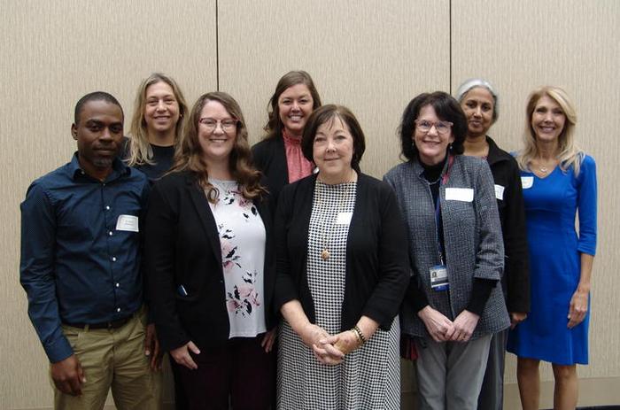 From left, Reuben Adatorwovor, Courtney Brown, Jennifer Harrison, Lindsey James, Julie Watts McKee, Cynthia Beebou, Malini Kirakodu and Pamela Stein.