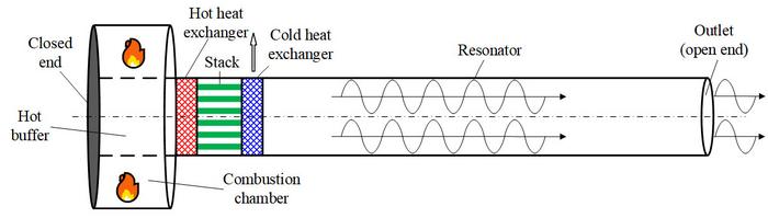 A diagram of the thermoacoustic engine proposed in Guo’s research.